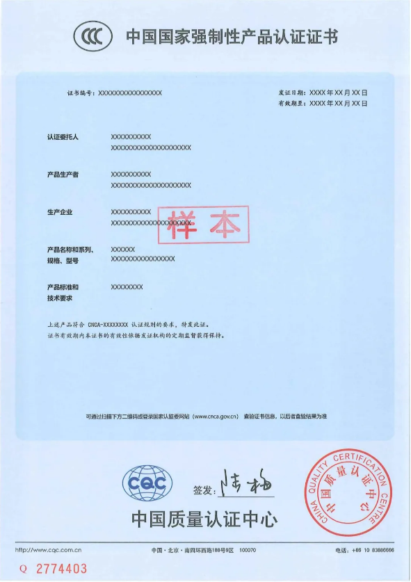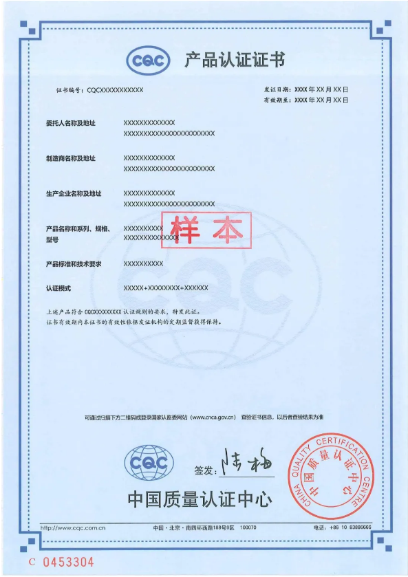 2. For the new version of the certificate, please refer to the column of certificate samples on the CQC official website.