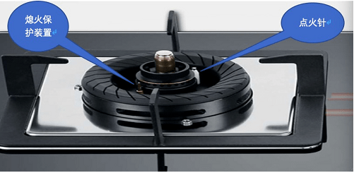 When cooking, it often happens that the gas stove is extinguished due to liquid overflow and blowing. The flameout protection device is generally installed between the inner and outer ring fire covers (as shown in the figure).