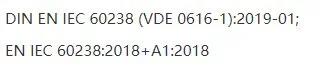 此外,杂类灯座旧标准(DIN EN 60838-1:2011-12;EN60838-1:2014+A1:2008+A2:2011-04)将在2020年8月4日起失效,螺纹灯座旧标准(DIN EN 60238:2011-10;EN 60238:2004+A1:2008+A2:2011-04)在2021年8月10日起失效。如果您的VDE证书是在标准更新前申请,仍未完成标准更新,请抓紧时间更新。