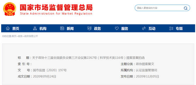 近日,市场监管总局发布对政协十三届全国委员会第三次会议第2267号(科学技术类116号)《关于加强质量认证体系建设,促进高质量发展的提案》的答复。明确将拓展质量认证覆盖面,修订相关法规规章,强化认证行业监管、提升认证机构服务能力。